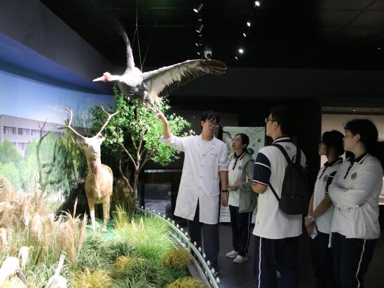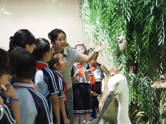 义兴里小学张馨匀老师带领学生走进标本的世界,她讲述了“海洋守护者”藻类植物的生态价值、昆虫世界的“生存游戏”、“四不像”麋鹿的“回家路”。展馆里“重生”的标本让学生们深刻明白生态保护的重要意义,“我们应该像守护国宝一样守护动物,就像战士守护祖国的土地!”同学们的话语里,满含着对生态守护的深深敬意,藏着“生态小卫士”的责任与担当。